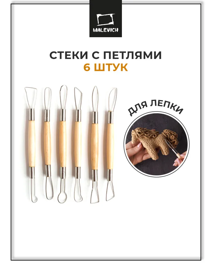 Стек для лепки Малевичъ 6 шт.Использую стеки для глины, срез роынй получается, удобно делать фактуру. Ручка деревянная, петли закреплены надежно.