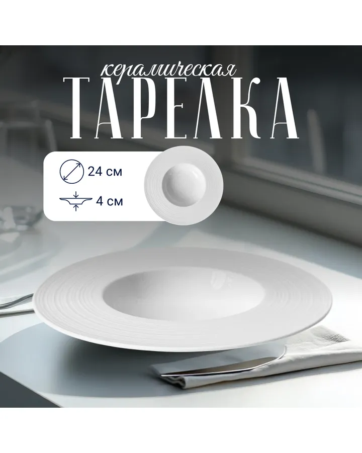 Тарелка сервировочная ZDK для пасты и вторых блюд Homium Tudor D24см цвет белый