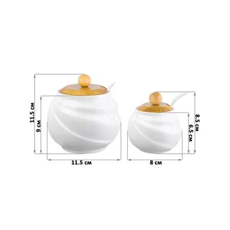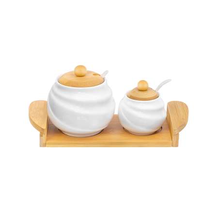 Сахарница Elan Gallery 620 мл Белое кружево на деревянной подставке