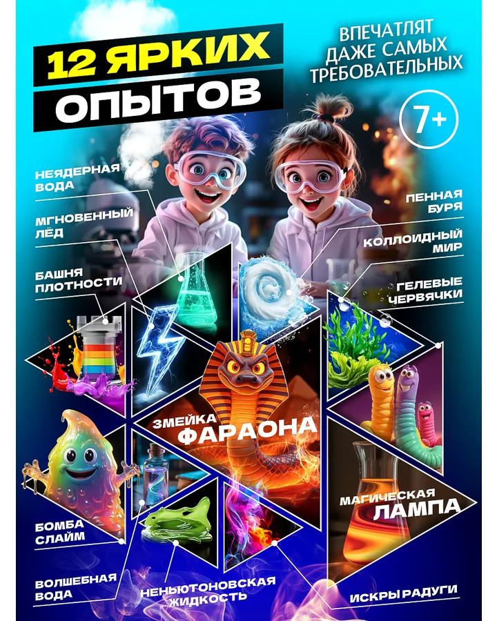 Покупаю 2 раз, ребенок еще попросил! Яркие, красивые и при этом легкие! Есть все необходимое. Ребенок сам делает, а мы зрители. Только у нас в это не опыты, а фокусы. "Мама, смотри, как я умею 🤣"