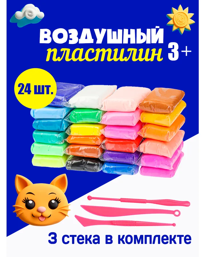 Пластилин Рыжий кот легкий, воздушный 24 цв.