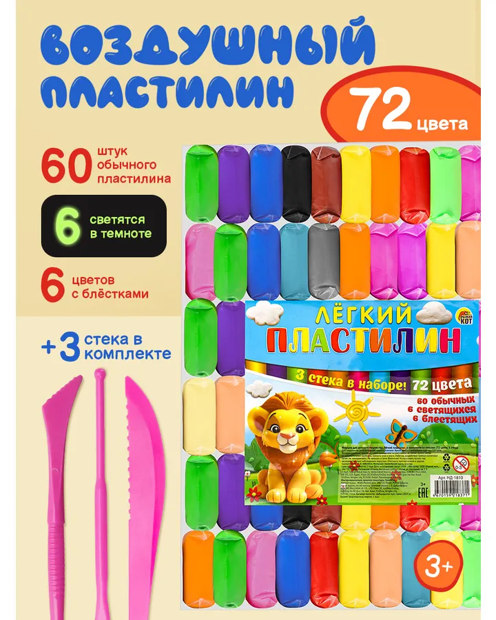 Пластилин Рыжий кот легкий, воздушный 72 цв.