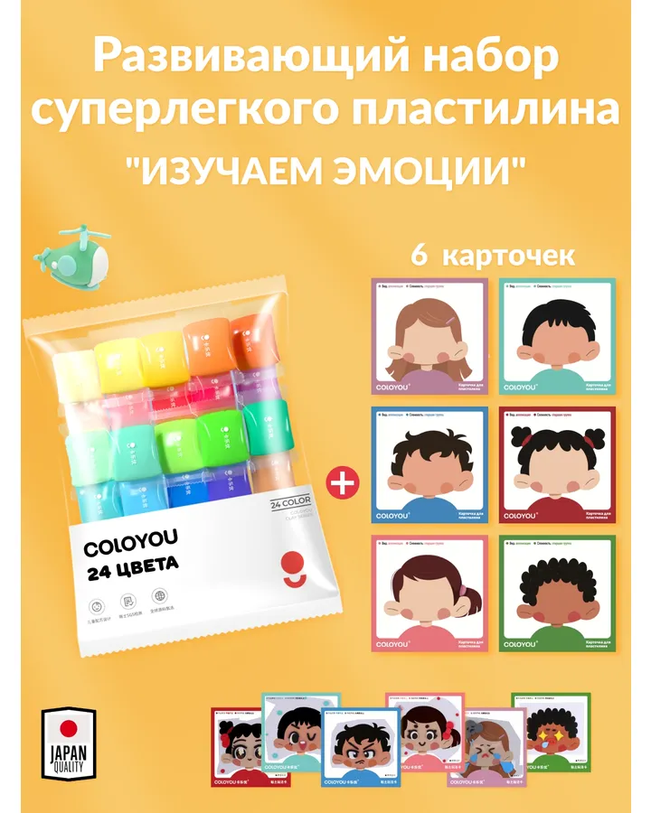 Пластилин COLOYOU С большими карточками Эмоции воздушный 24 цв.