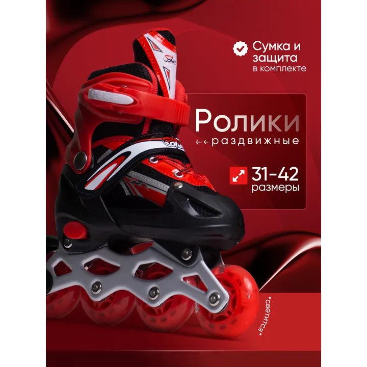 Роликовые коньки Saimaa 35-38Отличный набор для подарок. Размер подходит от 33 размера. Купила сыну на ДР. Обувь носит 33 размера. Ролики отлично подошёл. Круто выглядит. Яркая и не очень тяжёлая. Катается с удовольствием