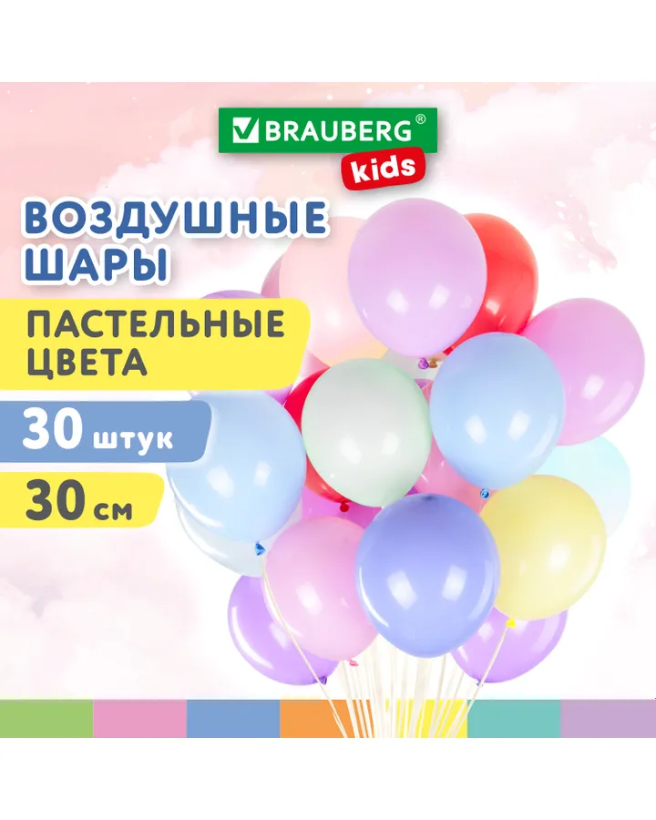 Шары воздушные Brauberg яркие 30 см набор 30 штук