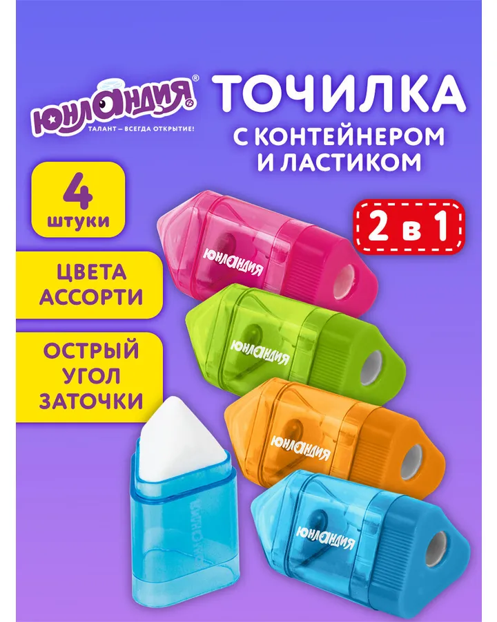 Точилка Юнландия 4 шт.Супер точилки. Очень понравились. И целых 4 штуки. Брала несколько и эти оказались лучшие. Поточили любые карандаши. Очень удобные