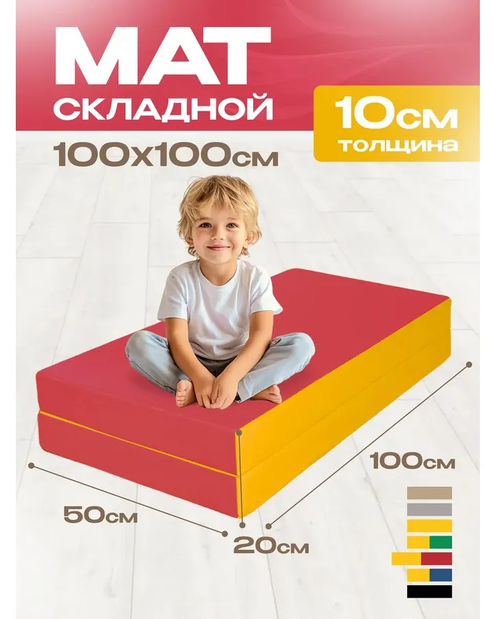 Мат спортивный KMS sport № 3 (100 х 100 х 10) складной красно-жёлтый