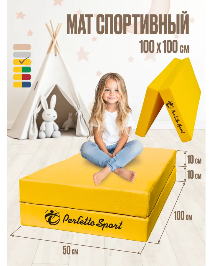 Мат Perfetto Sport № 11 (100х100х10 см) складной жёлтый