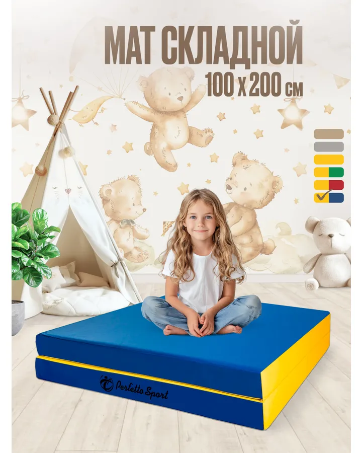 Мат спортивный Perfetto Sport № 8 100х200х10 см складной сине-жёлтый