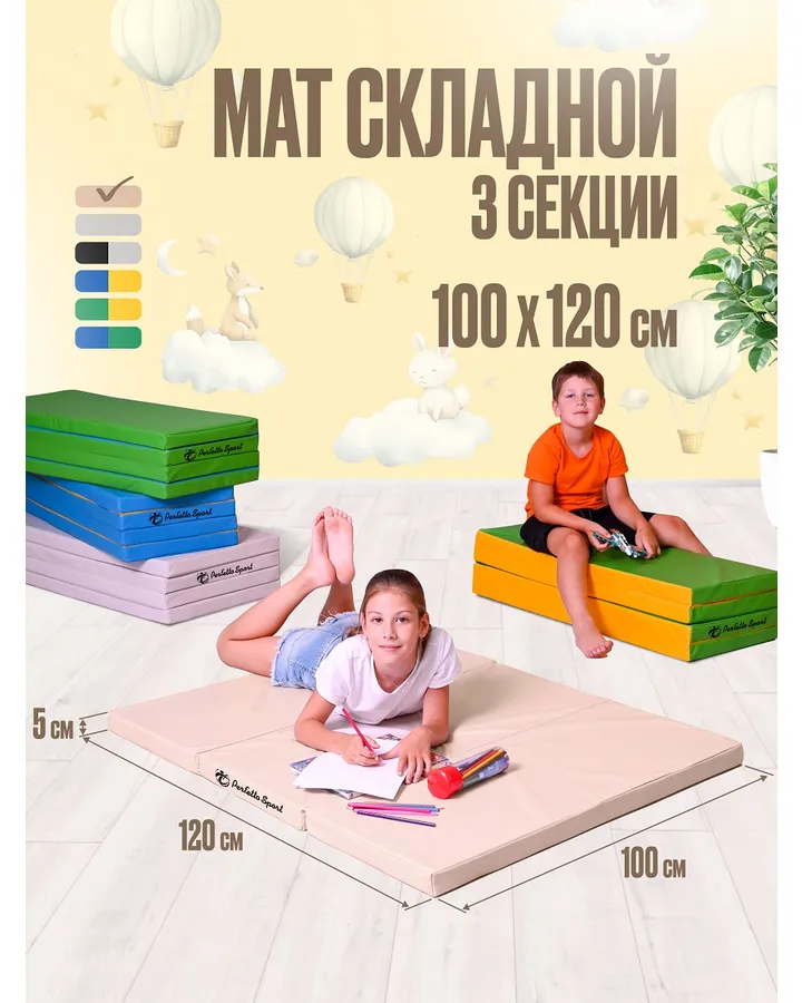 Мат спортивный Perfetto Sport № 22 100 х 120 х 5 2 сложения пастель