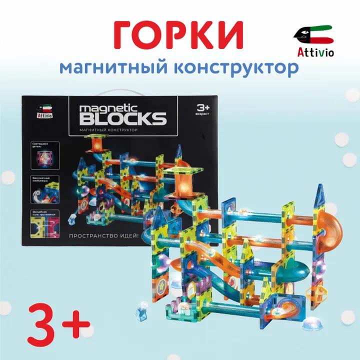 Конструктор Attivio Горки со светом магнитный 70 дет.Интересная игра