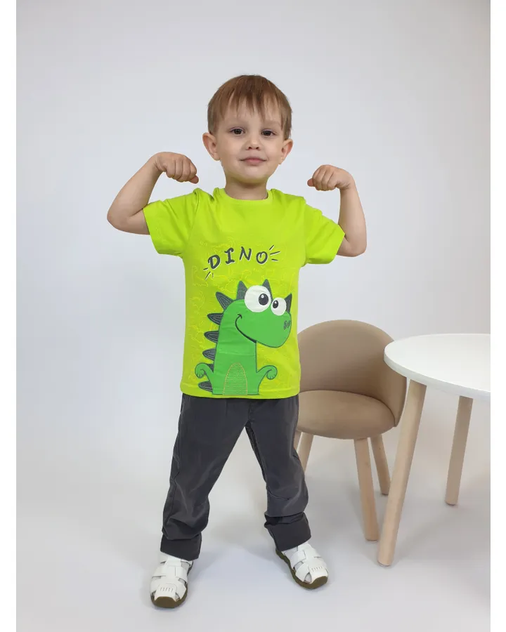 Футболка понравилась. На худощавом ребенке ростом 80 см размер 92 впору. Размер 86 был бы скудноват (есть другая футболка этого бренда р.86). После нескольких стирок не перекосилась и с принтом всё в порядке.