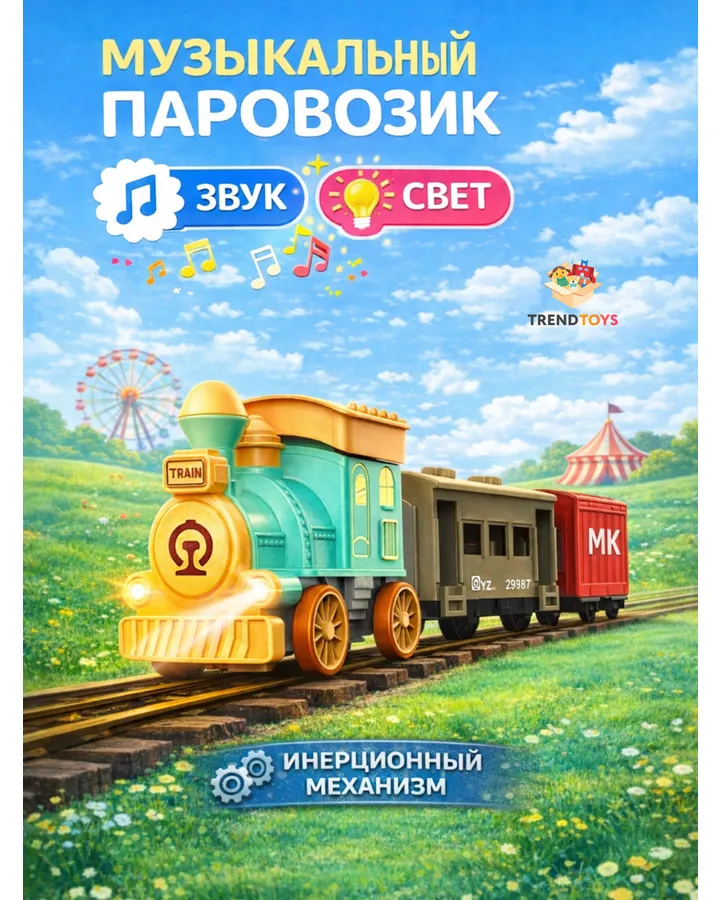 Детский музыкальный паровозик с вагонами TrendToys интерактивный