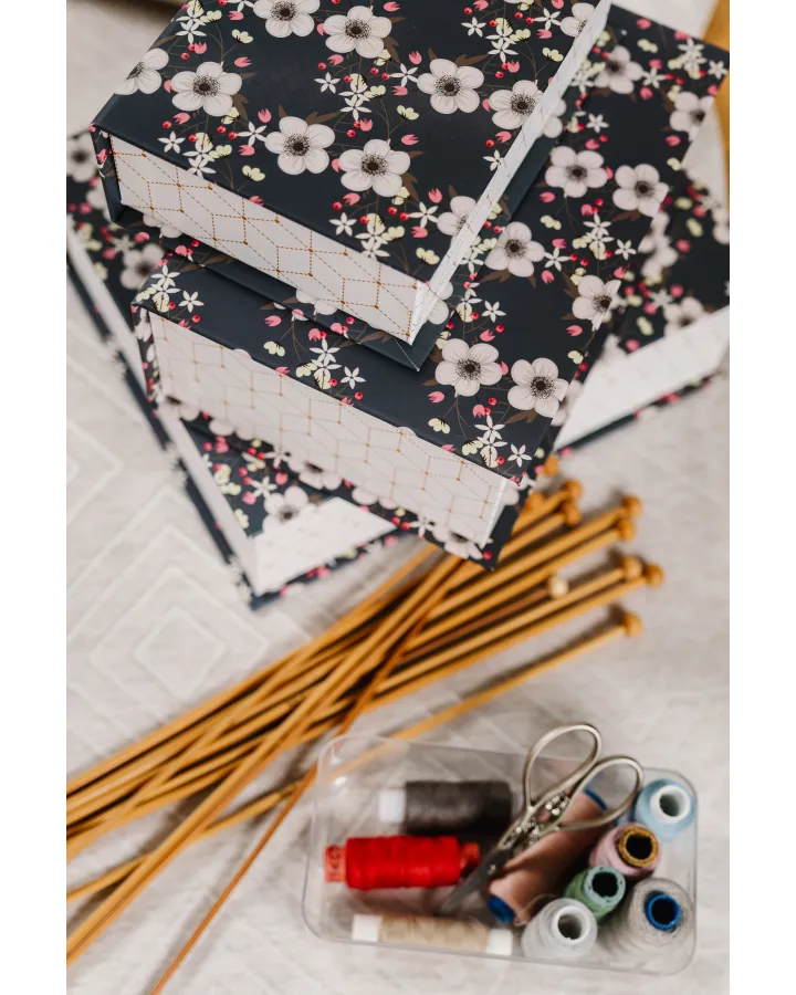 Шкатулка для рукоделия Cartonnage средняя 205 x 145 x 75 мм Цветы черный