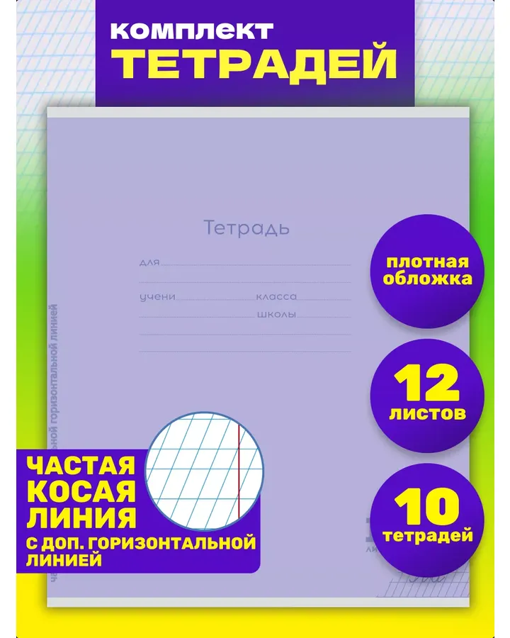 Тетрадь Prof-Press косая линейка 10 шт.