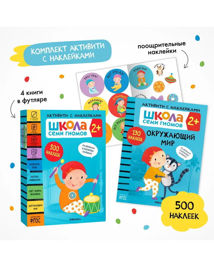 Комплект Школа Семи Гномов Базовый курс 2+ 12 книг речь мышление моторика окружающий мирРебенку годик очень нравятся книжки, 0+, теперь 1+ изучает с интересом. Сам достает из шкафа) Картинки яркие, листы прочные, много интересного и ребенок не устает от занятий.
