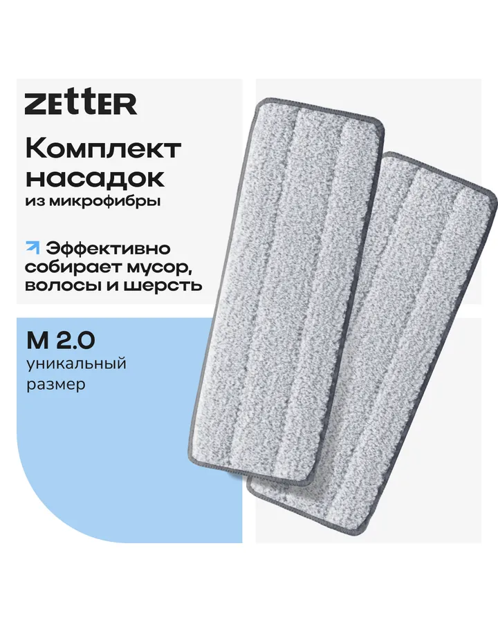5Насадка для швабры Zetter M 2.0 2 штСоответствуют своему назначению, впитывают воду хорошо, промывают пол замечательно