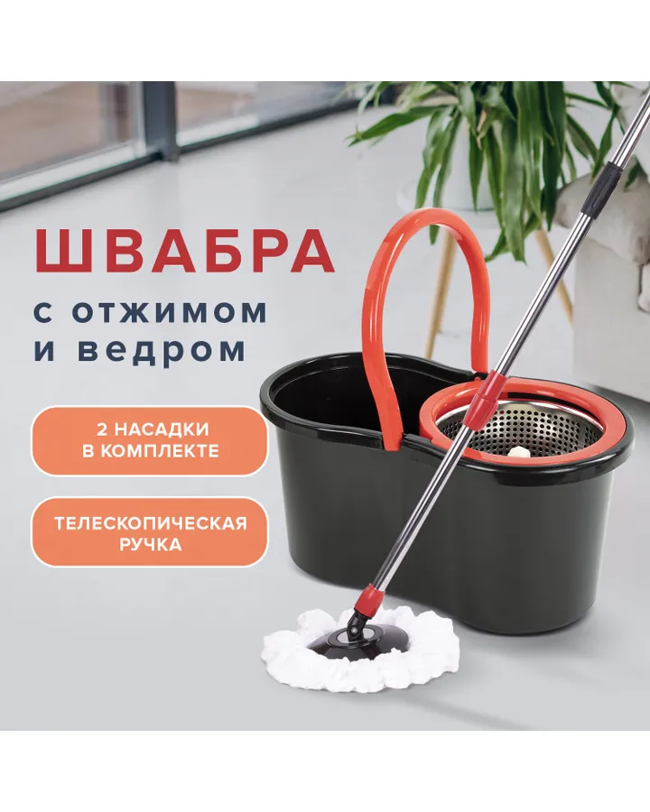 Набор для мытья полов Лайма швабра с отжимом и двухкамерным ведром