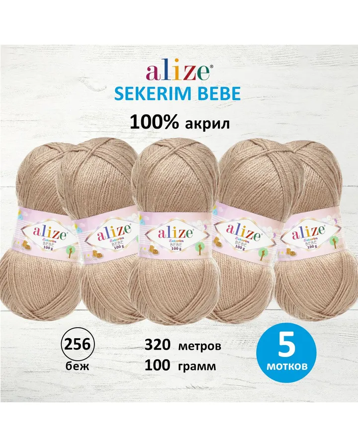 Пряжа для вязания Alize sekerim bebe 100 гр 320 м акрил для мягких игрушек 256 беж 5 мотков