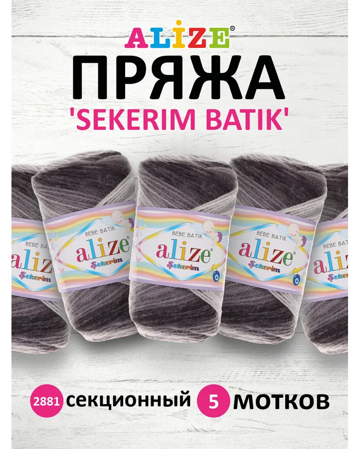 Пряжа для вязания Alize sekerim batik 100 гр 320 м акрил мягкая для детской одежды 2881 секционный 5 мотков
