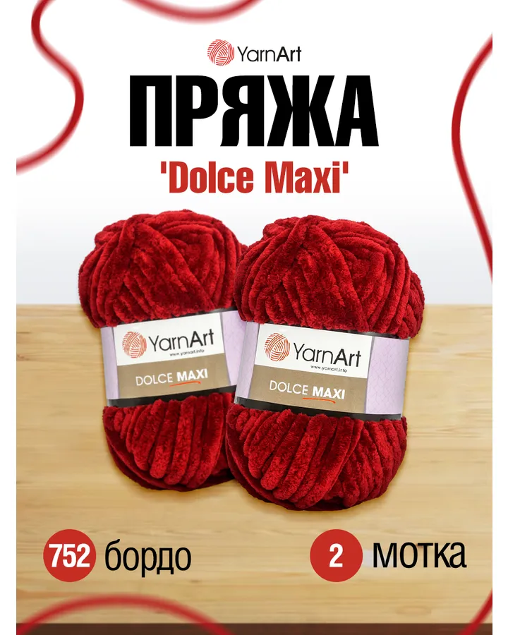 Пряжа для вязания YarnArt Dolce Maxi 200 гр 70 м микрополиэстер объемная мягкая 2 мотка 752 бордо