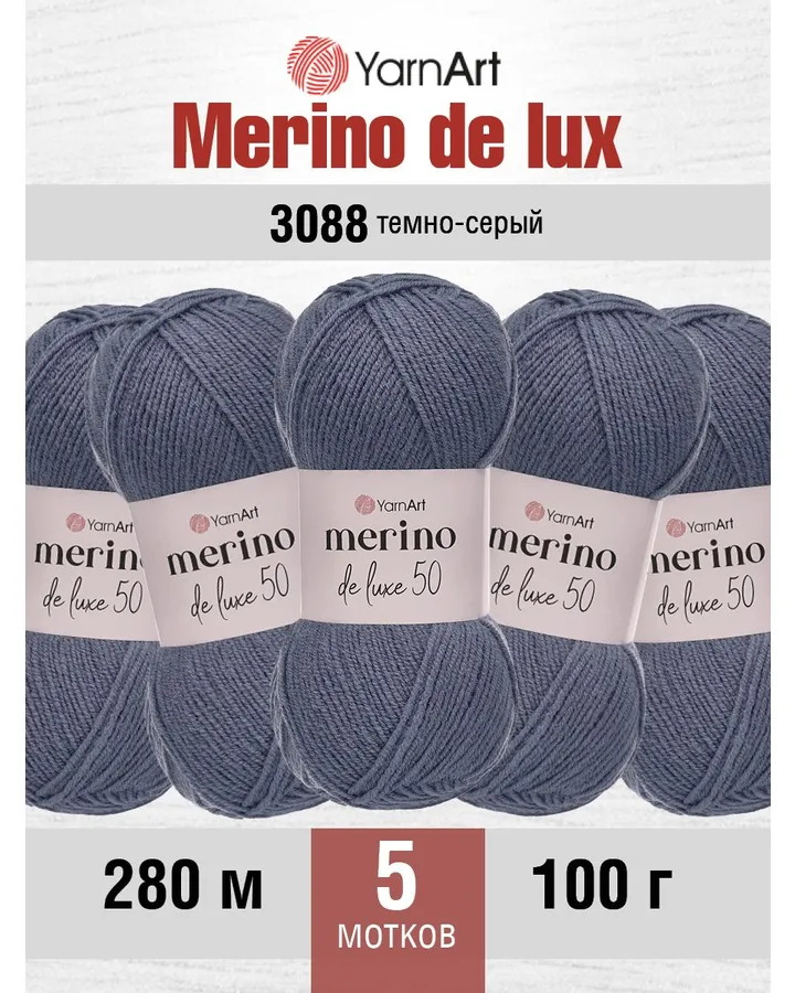 Пряжа YarnArt Merino de Lux полушерстяная 100 г 280 м 33 светло-серый 5 мотков
