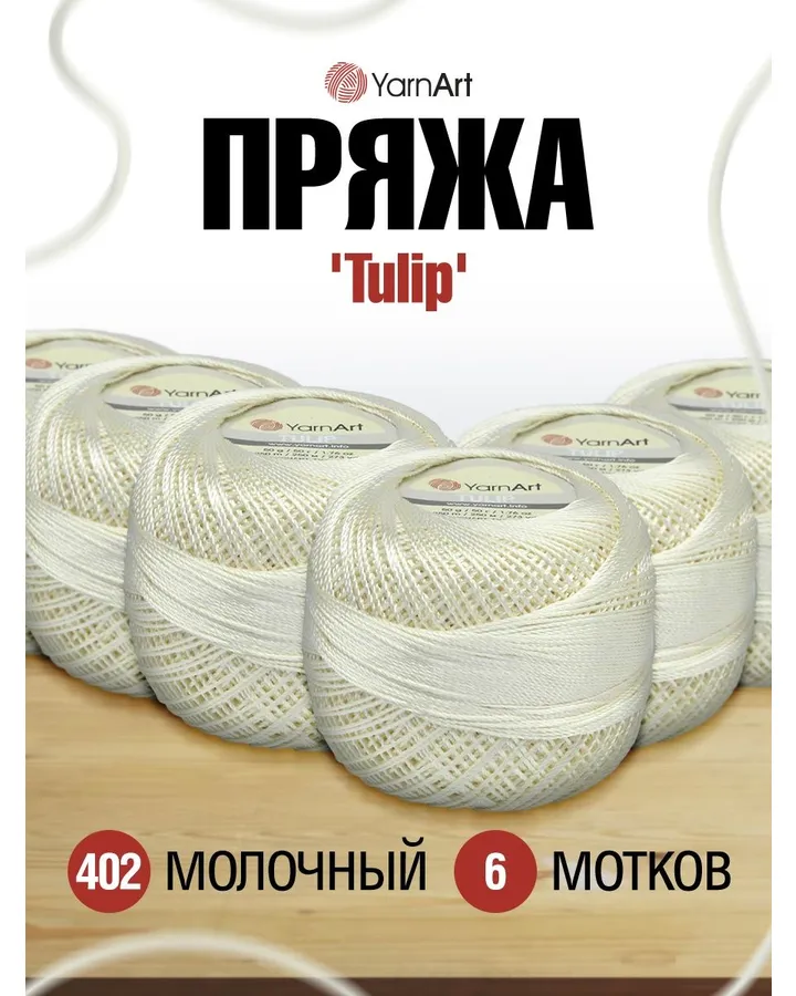 Пряжа YarnArt Tulip переливающаяся для вязания летних вещей 50 г 250 м 475 светло-серый 6 мотков