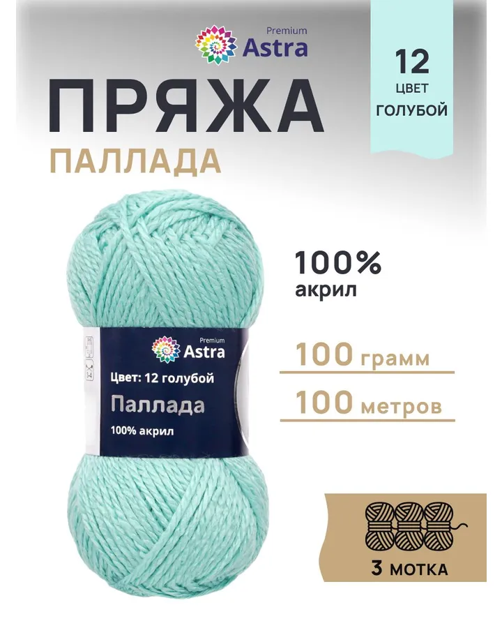Пряжа Astra Premium Эвридика шерстяная 100 г 200 м 12 ярко-голубой 3 мотка