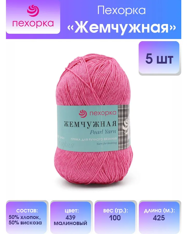 Пряжа Пехорка Хлопок натуральный Кабле для игрушек амигуруми 100 г 425 м 191-Ежевика 5 мотков