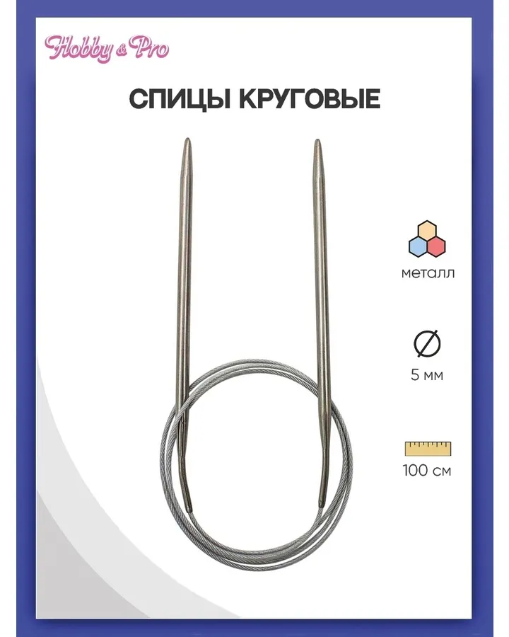 Спицы круговые Hobby Pro металлические с гибким металлическим тросиком для тонкой пряжи 100 см 5.0 мм 941150