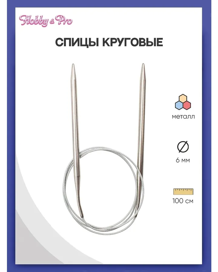 Спицы круговые Hobby Pro металлические с гибким металлическим тросиком для деликатной пряжи 100 см 6.0 мм 941160