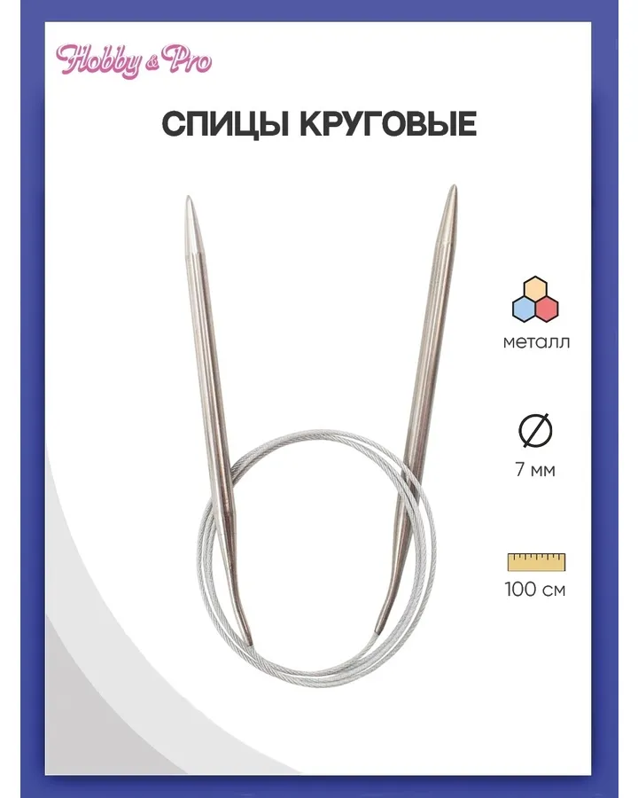 Спицы круговые Hobby Pro металлические с гибким металлическим тросиком для тонкой пряжи 100 см 7.0 мм 941170