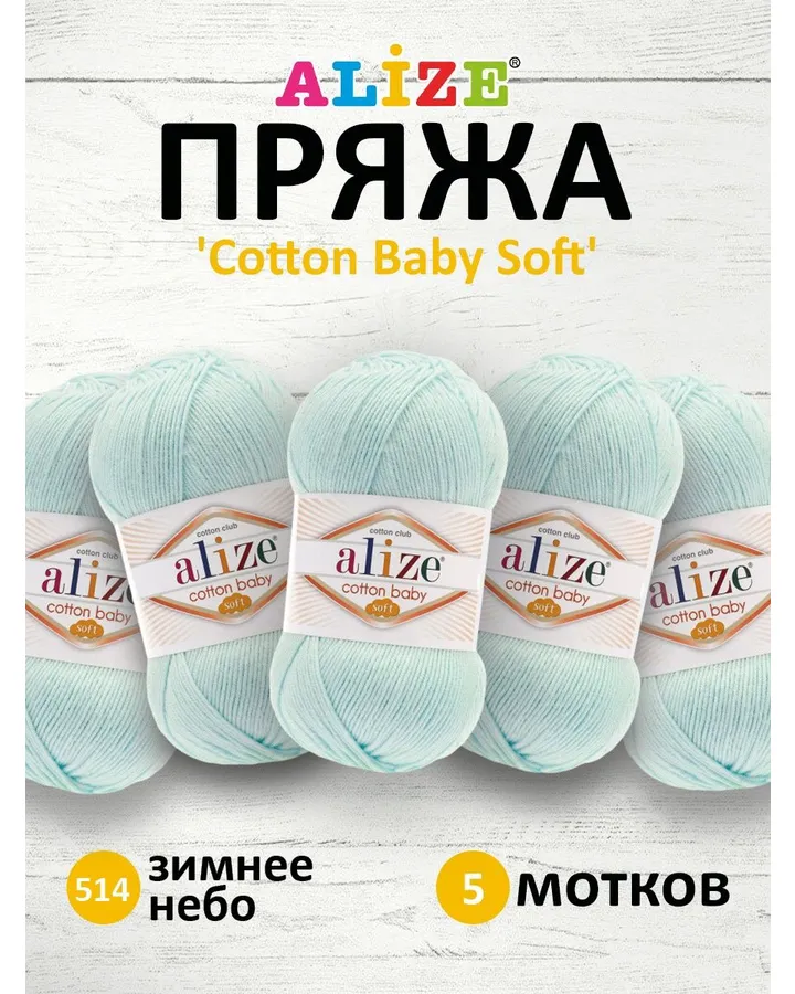 Пряжа для вязания Alize cotton baby soft 100 гр 270 м мягкая плюшевая xлопок aкрил 514 зимнее небо 5 мотков