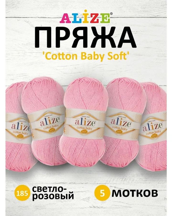 Пряжа для вязания Alize cotton baby soft 100 гр 270 м мягкая плюшевая xлопок aкрил 185 светло-розовый 5 мотков