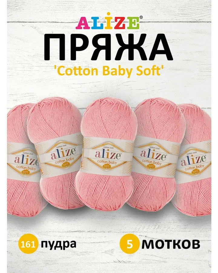 Пряжа для вязания Alize cotton baby soft 100 гр 270 м мягкая плюшевая xлопок aкрил 161 пудра 5 мотков
