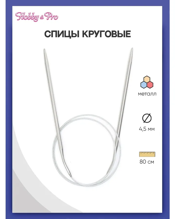 Спицы круговые Hobby Pro из нержавеющей стали с гибким металлическим тросиком 80 см 4.5 мм 943445