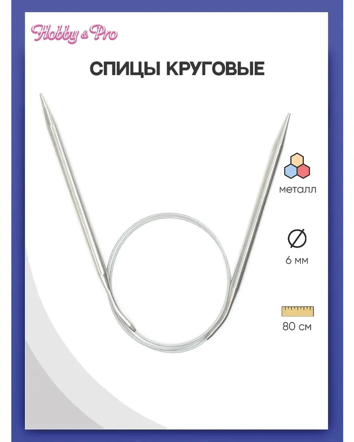 Спицы круговые Hobby Pro из нержавеющей стали с гибким металлическим тросиком 80 см 6.0 мм 943460