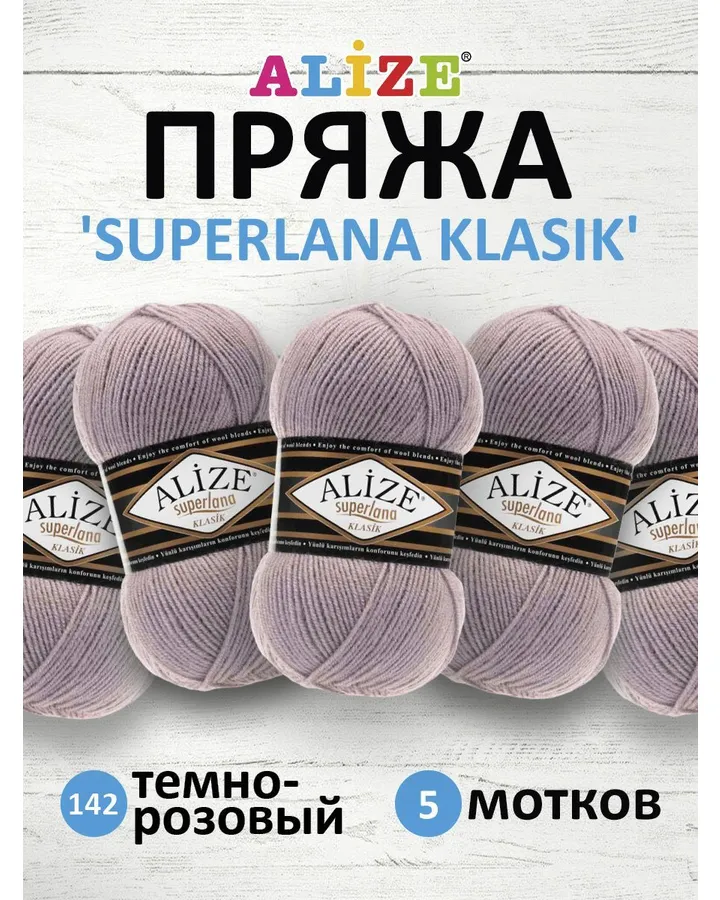 Пряжа Alize для вязания шарфов Superlana klasik 100 гр 280 м 5 мотков 505 пепельно-сиреневый