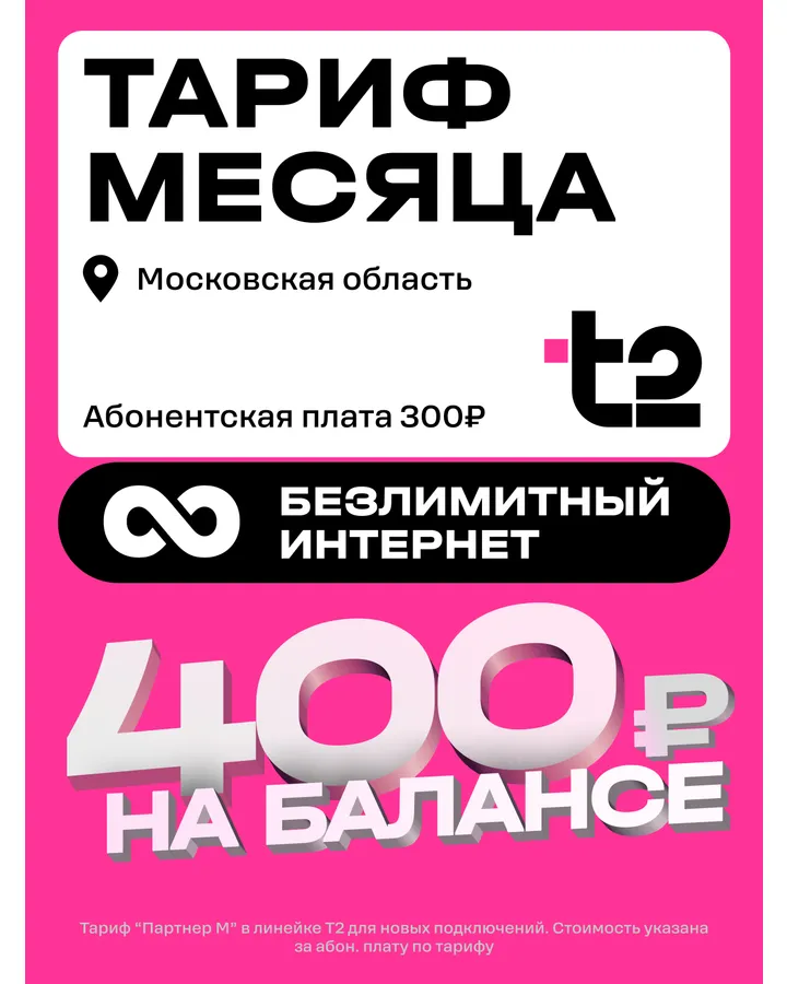 Sim-карта t2 для Москва, Московская область, тариф Классический, баланс - 400 рублей