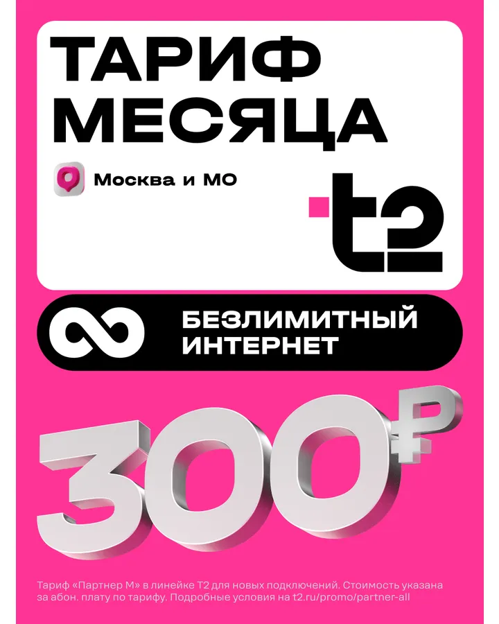 Сим-карта t2, Вся Россия, баланс - 300 рублей