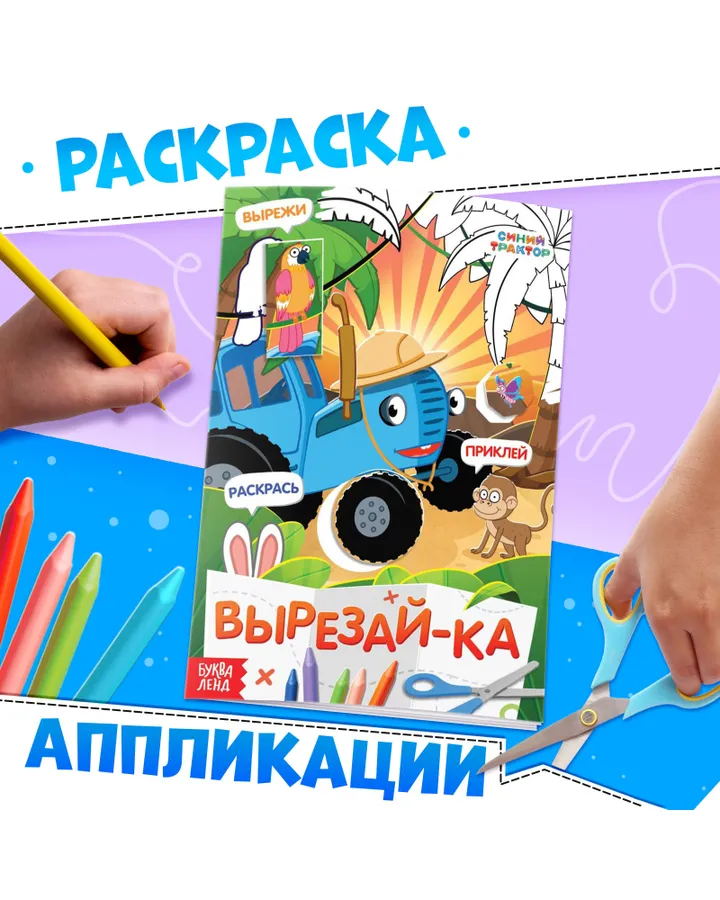 Книжка-аппликация Синий трактор Вырежи приклей раскрась