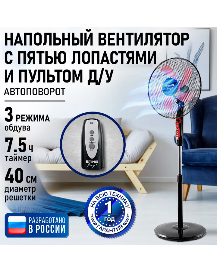 Вентилятор напольный STINGrayОтличный вентелятор, со своей задачей справляется на 5 с большим + Рекомендую к покупке