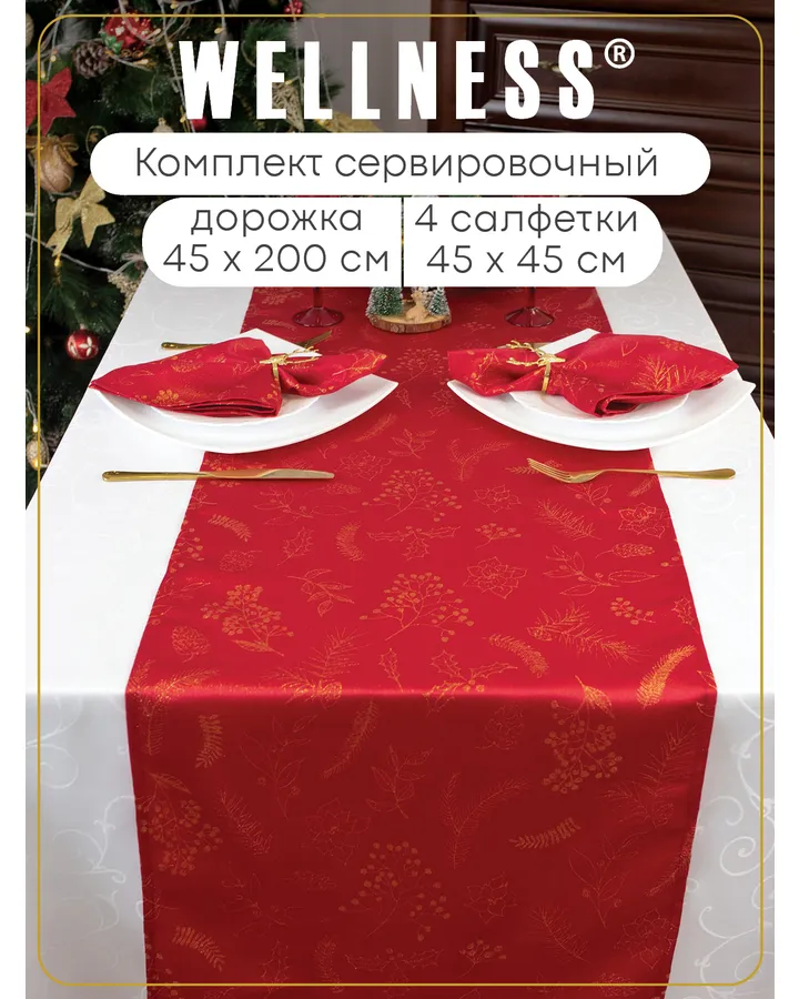 Скатерть дорожка 45x200 с 4 салфетками Wellness WF520/4-Сияна*08