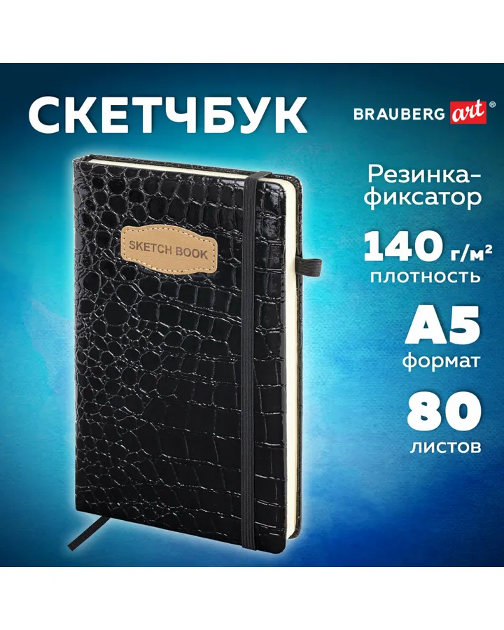 Блокнот-скетчбук Brauberg для рисования эскизов черная бумага 120 г/м2