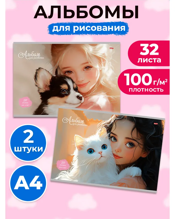 Альбом Profit Девочка и зверушка А4 32 лист. 2 шт.