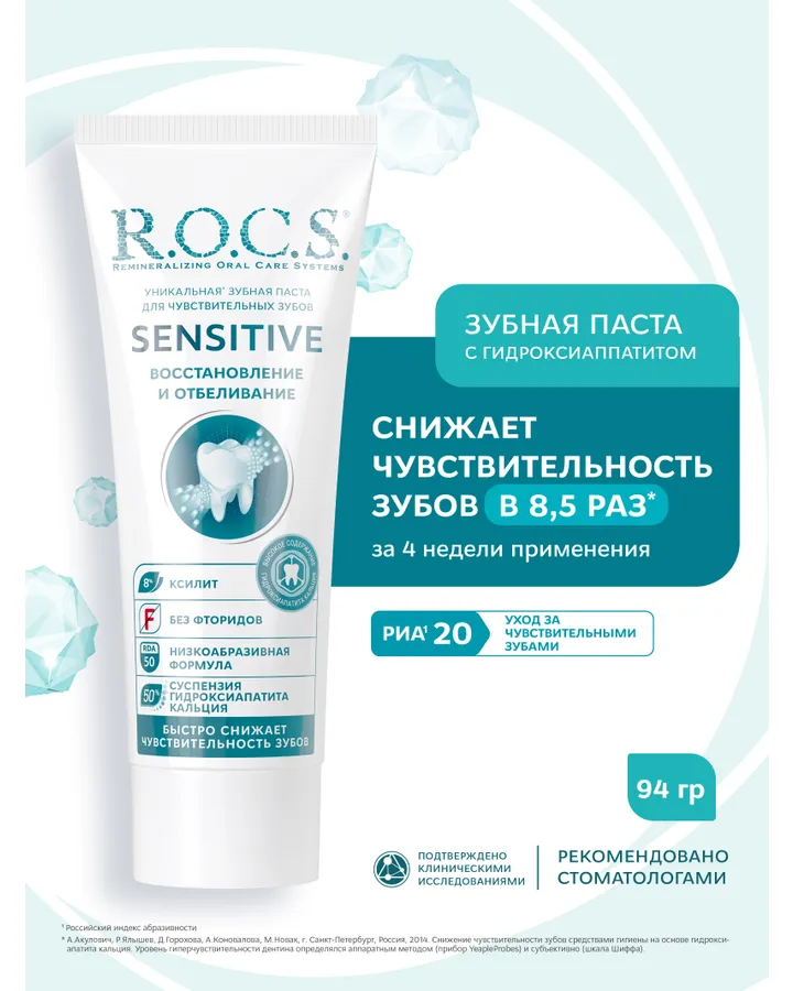 5Зубная паста R.O.C.S.Пользуемся по совету стоматолога. Эффект прекрасный, чувствительным деснам идеально подходит.