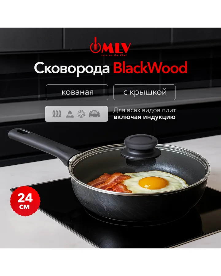 Сковорода со стеклянной крышкой Moulin Villa Blackwood 24 см