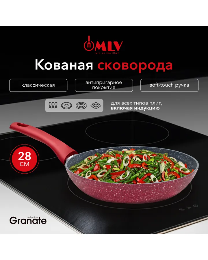 Сковорода с антипригарным покрытием Moulin Villa Granate 28 смОтличная сковородка для индукции. Греется очень быстро и не пригорает. Пользуюсь каждый день уже месяца три.