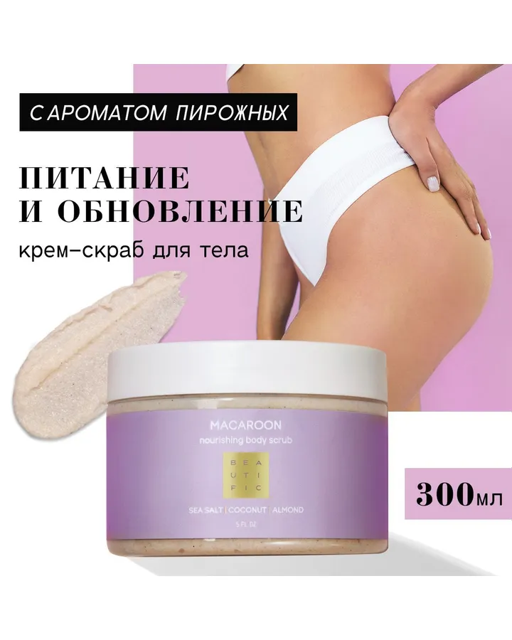 Скраб BEAUTIFIC Bootylicious 300 млШикарный скраб, частицы небольшие, не травмируют. Кожа нежная, напитанная и шелковистая. Ещё хочу отметить что изначально скраб кажется масляным, но это не так, масло в скрабе жидкое как водичка и отлично впитывается не оставляя никакой жирной пленки.