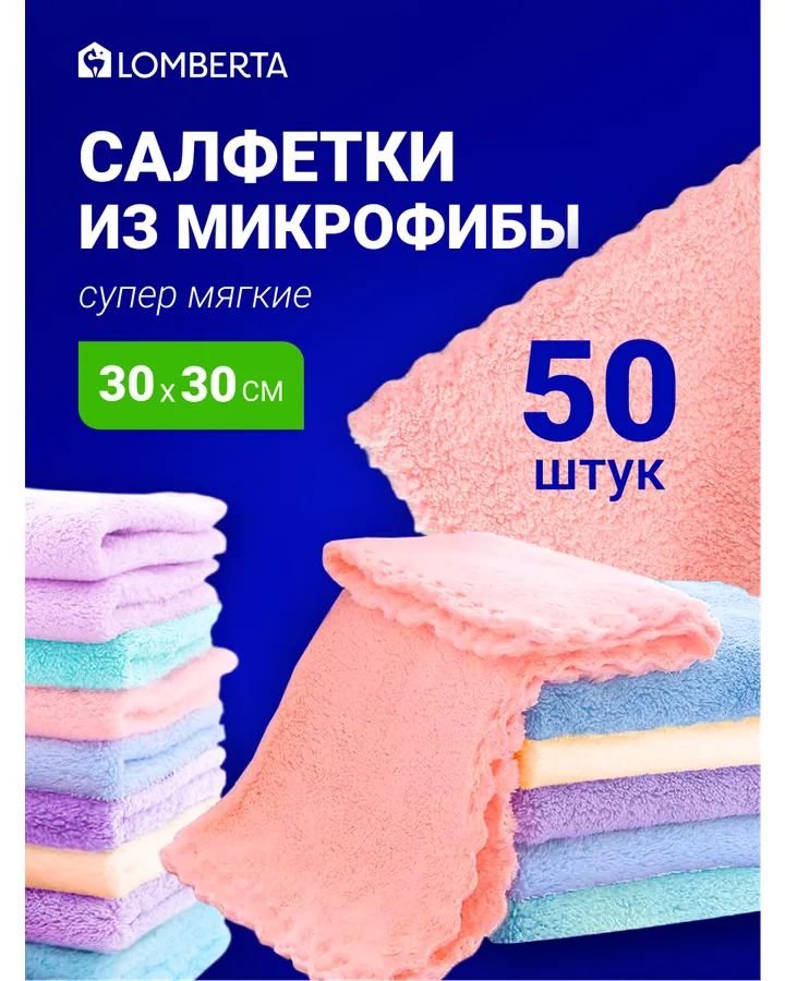 Салфетки из микрофибры Lomberta 50 шт Lomberta тряпки универсальные